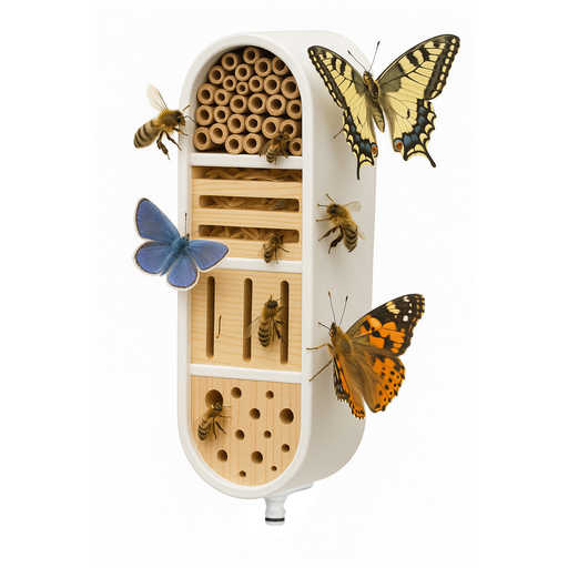 Nicht nur Vögel sind auf unsere Hilfe im Bezug auf Nistplätze angewiesen, sondern auch Insekten. Aufgrund der oftmals modernen Bauweise und der fehlenden Blumenwiesen in Städten, fehlen für Insekten Aufenthaltsorte. Mit einem Insektenhotel, das in verschiedene Segmente eingeteilt ist, damit mehrere Insektenarten gleichermaßen einen Ort zum Verweilen haben, ist es ein leichtes, den brummenden und summenden kleinen Lebewesen etwas zu helfen. Hat man ein Insektenhotel im eigenen Garten, so helfen die Insekten, Schädlinge zu bekämpfen und Blüten zu bestäuben.