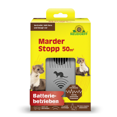 Se desiderate allontanare efficacemente le martore senza ricorrere a installazioni complicate, il Neudorff MarderStopp 50 m² è la soluzione ideale. Questo affidabile dissuasore per martore utilizza la moderna tecnologia a ultrasuoni per tenere lontani questi animali fastidiosi dalla vostra proprietà. Particolarmente efficace come dissuasore per le martore in auto, il dispositivo protegge da costosi danni a cavi e tubi di accensione. Ma il dissuasore per martore a batteria garantisce anche pace e tranquillità in soffitte, garage o roulotte. Poiché il dispositivo emette frequenze in costante variazione, gli animali non si abituano mai al suono. Ciò offre una soluzione duratura contro questi parassiti notturni. È incredibilmente facile e flessibile da usare, in quanto non necessita di una presa di corrente nelle vicinanze. Inoltre, le onde ultrasoniche emesse sono innocue per persone, cani e gatti e sono appena percettibili. Proteggete la vostra proprietà dai danni causati dalle martore, ora, in modo preventivo e a lungo termine, con questo metodo fisico collaudato.