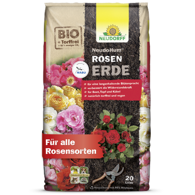 Se vuoi goderti rose forti con fioriture durature in giardino o sul balcone, hai bisogno della base giusta. Il terriccio per rose Neudorff NeudoHum offre esattamente le proprietà di cui hanno bisogno le piante da fiore esigenti. Questo terreno di coltura completamente privo di torba è ideale per rose da letto, rose in vaso e. La struttura sciolta previene efficacemente pericolosi ristagni d'acqua, mentre l'aggiunta di micorriza I funghi stimolano la crescita delle radici e massimizzano l'assorbimento dei nutrienti. Un grande vantaggio è la superficie ad asciugatura rapida, che ha un effetto preventivo contro fastidiosi moscerini, alghe e infestazioni di funghi. Il terreno è costituito da materie prime rinnovabili come fibra di legno e humus di corteccia ed è pre-fertilizzato in modo ottimale con guano per le prime tre o quattro settimane. Nutrienti per un forte sviluppo anno.